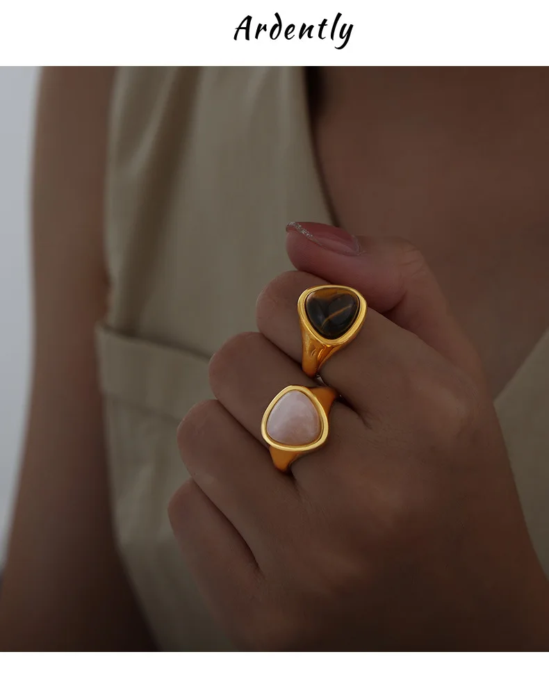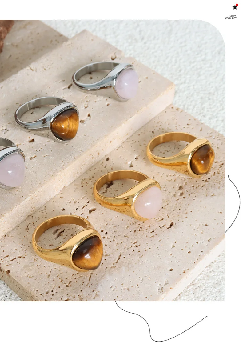 β¨ Golden Steel Ring β Tiger's Eye & Pink Crystal π